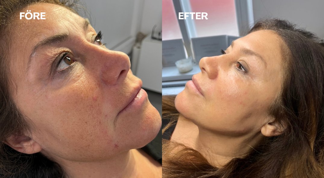 Behandlingen stimulerar kollagen och elastinproduktion, förbättrar hudens fukthalt och stärker hudbarriären.